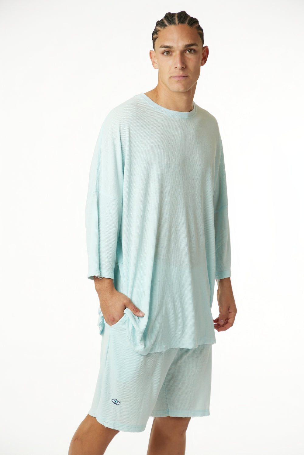 3/4 Sleeve Nicki Rib - Light Blue