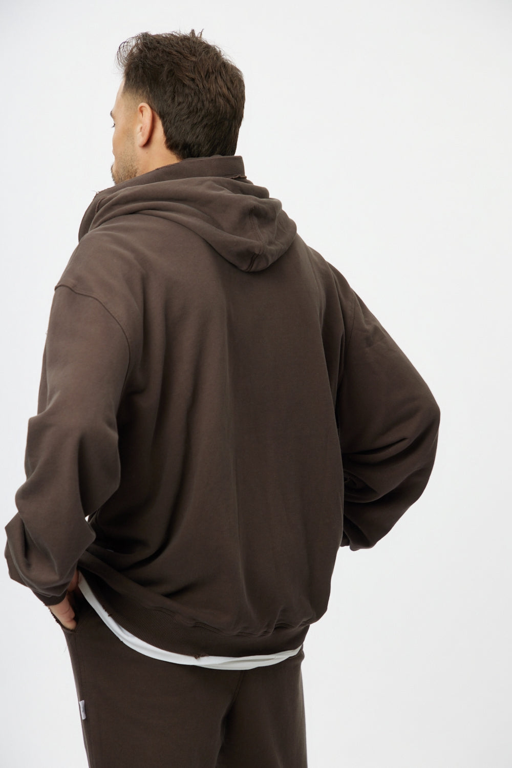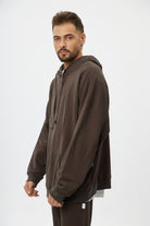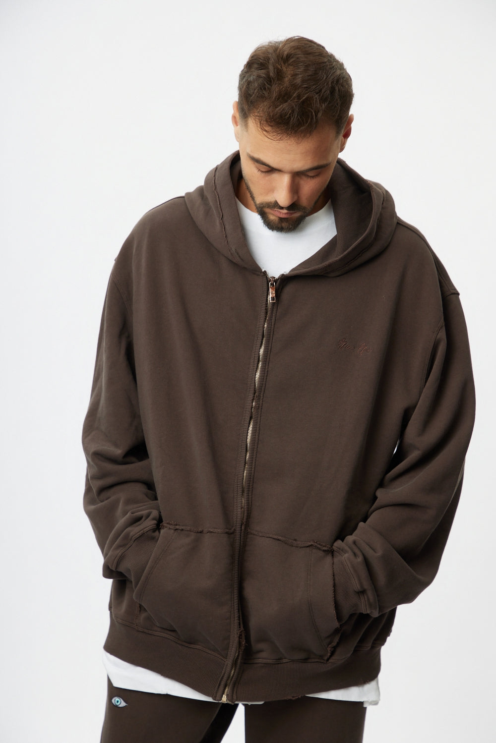 A lightweight fleece zip-up jacket with an unfinished, oversized, and relaxed look.