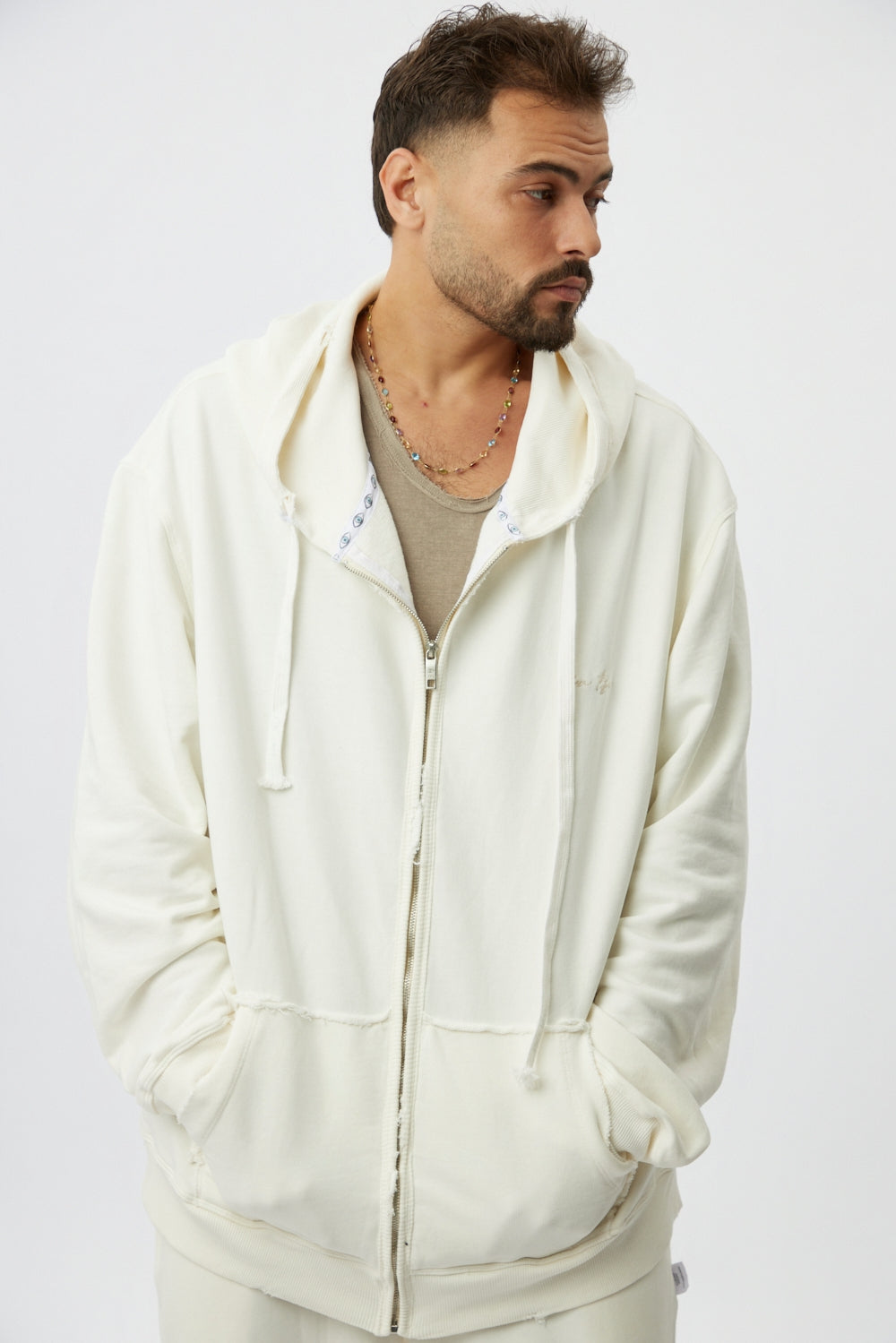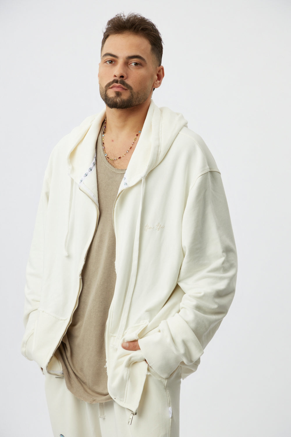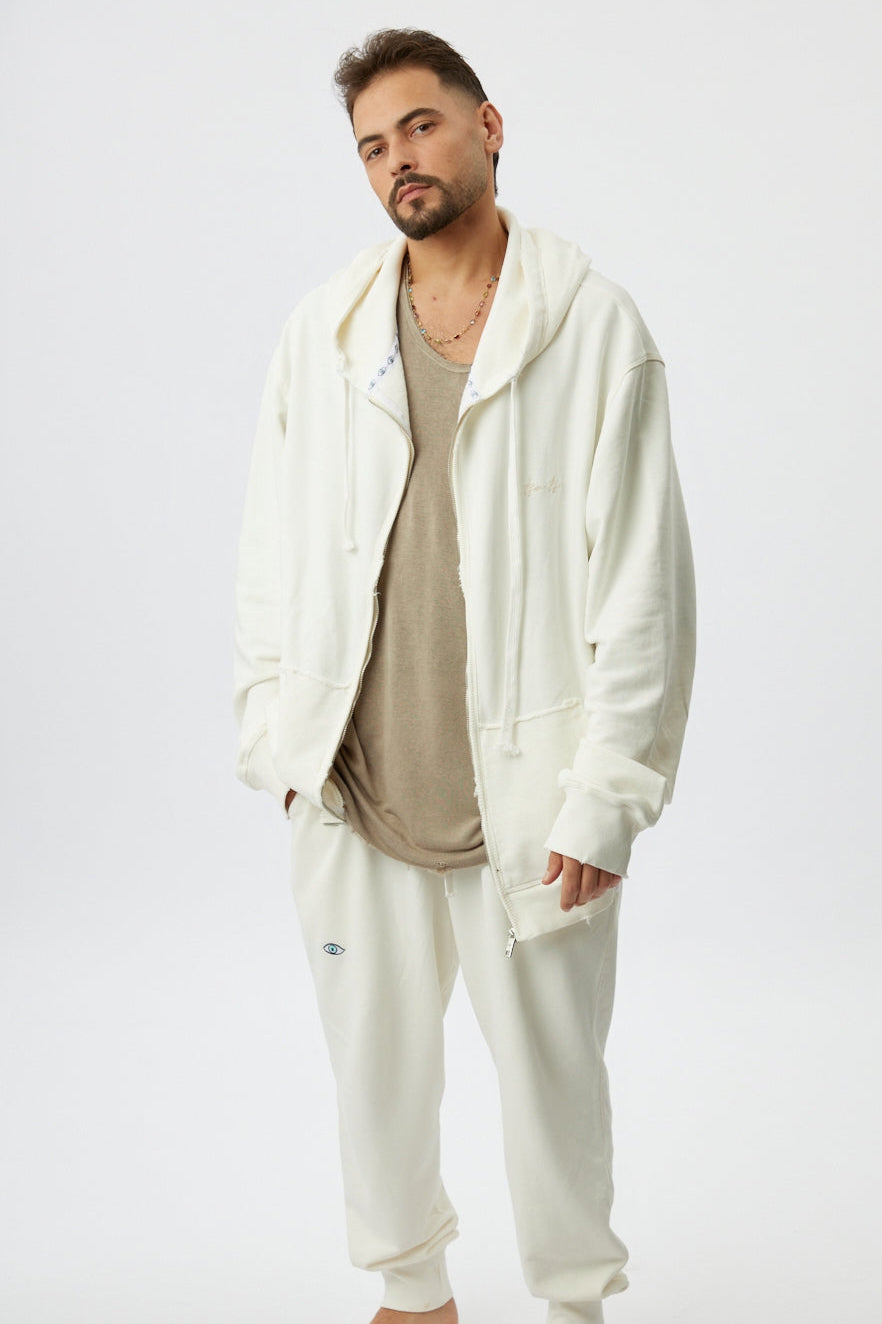 Zipper hoodie –Cream (Men)