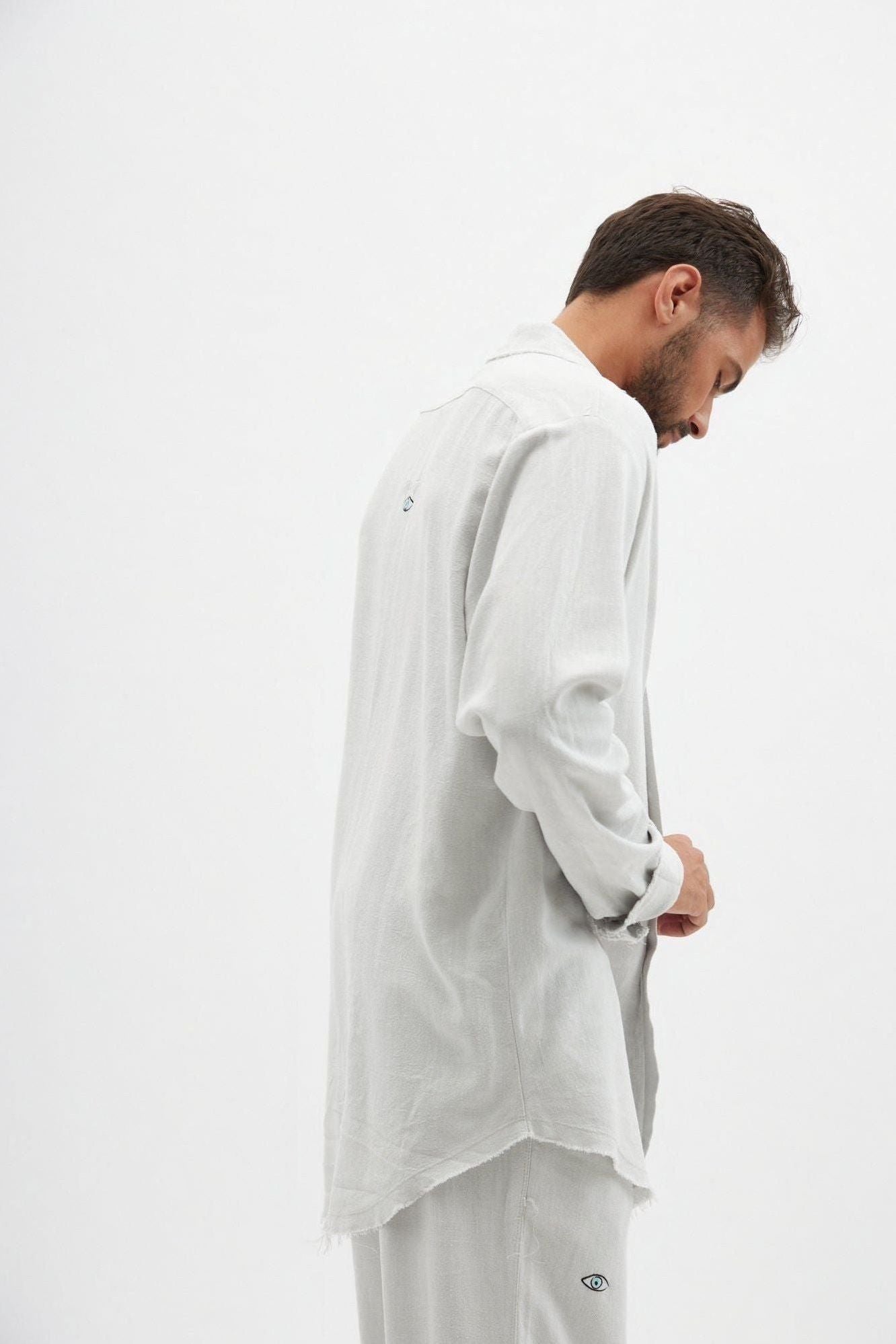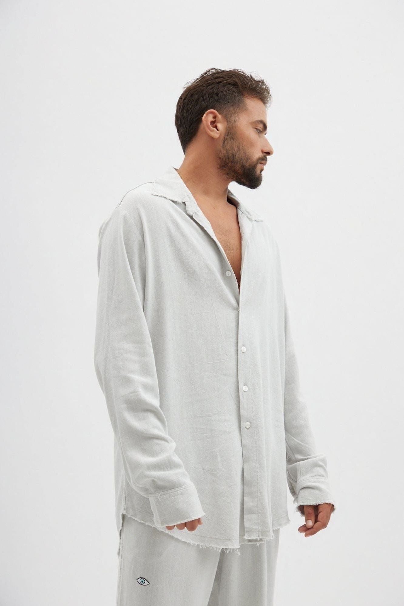 SOFT Linen Button-Up Shirt – Ice Grey