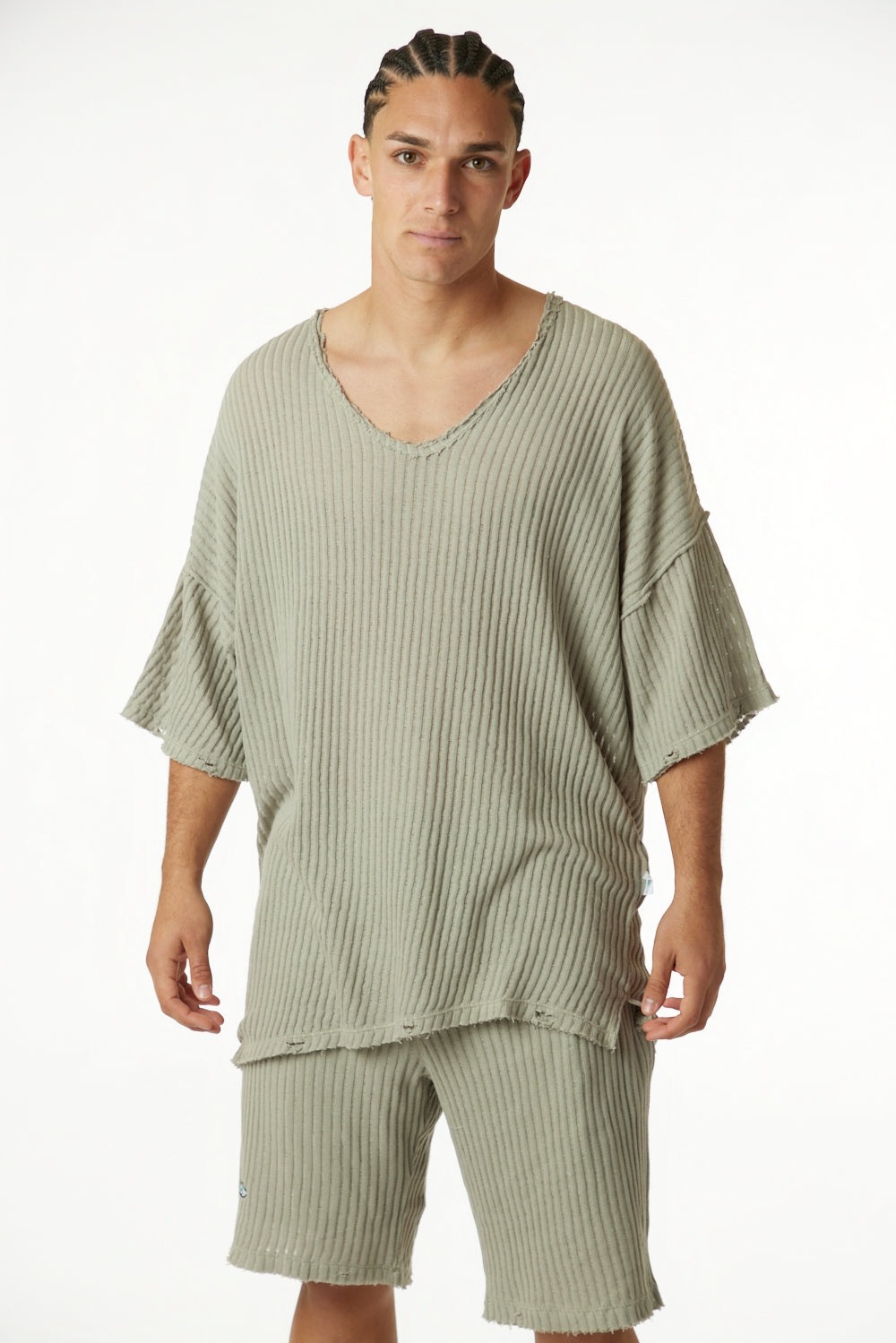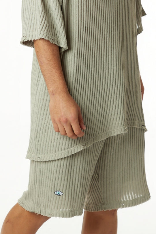 STRIPED KNIT PANTS – KHAKI