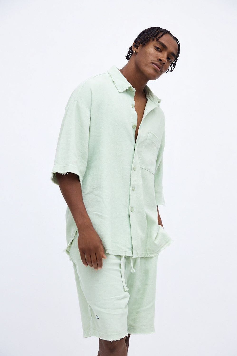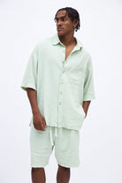 Canvas Short-Sleeve Button-Up Shirt - Apple Green