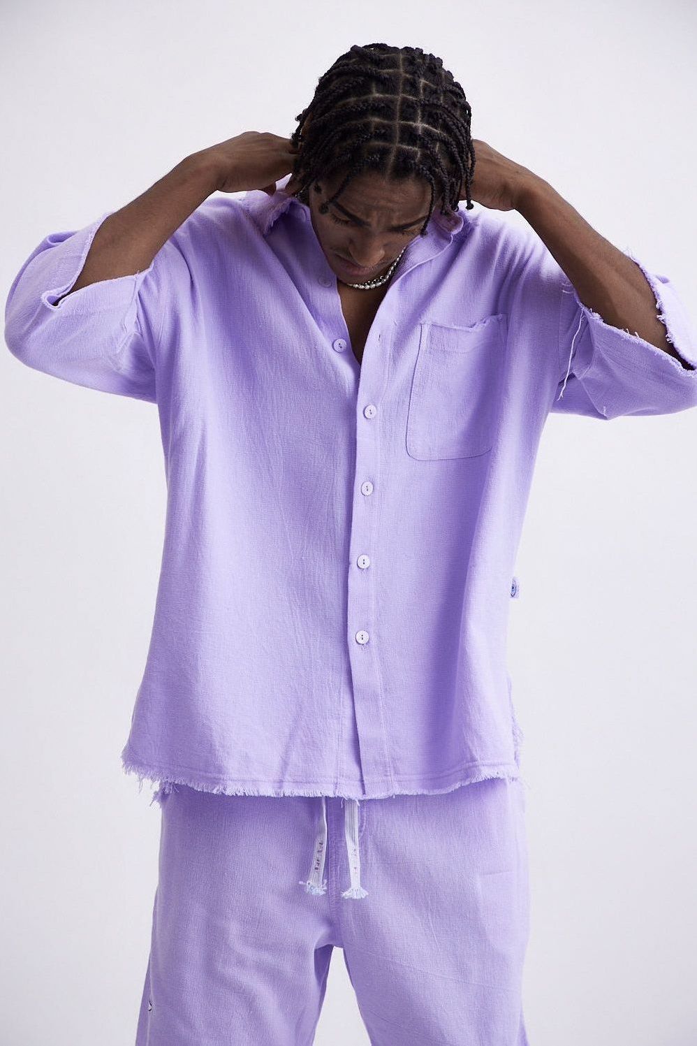 Canvas Short-Sleeve Button-Up Shirt - Lilac