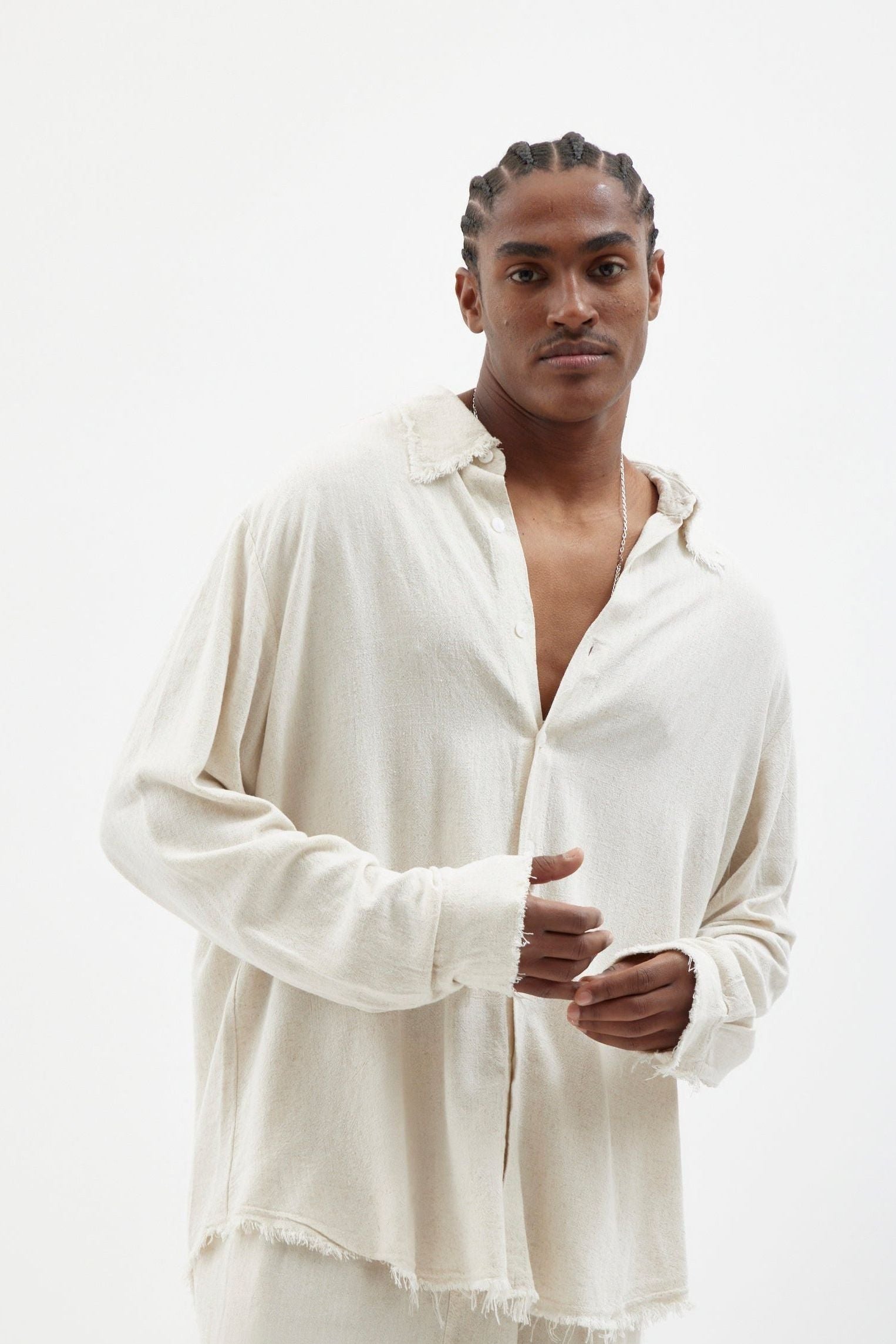 Made from soft, lightweight linen, this long-sleeve button-down shirt features a raw-cut finish. It’s perfect for any festive occasion — or simply for those moments when you want to feel like you’re on vacation.