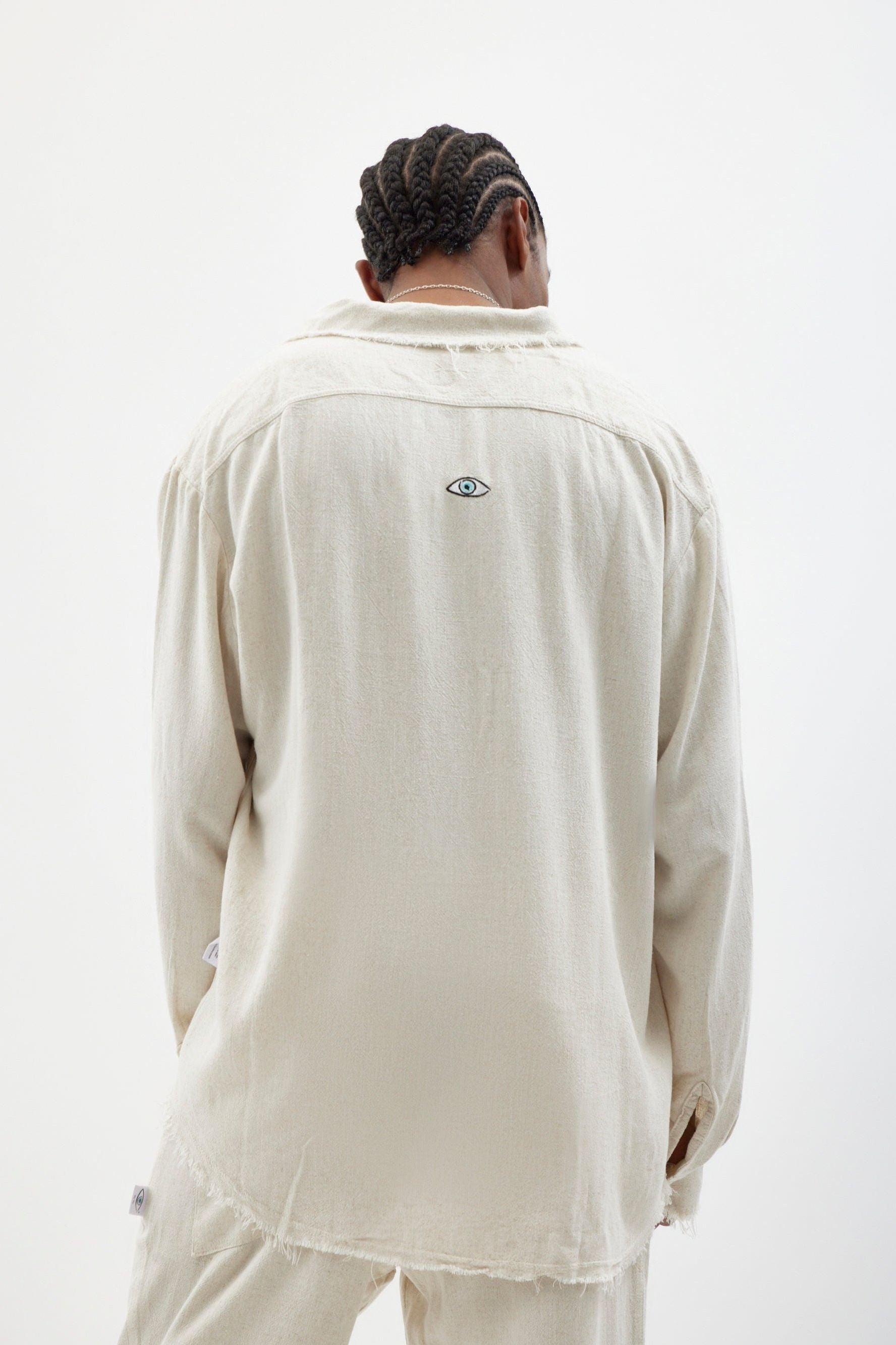 Finished with an embroidered Eye logo in a watercolor-inspired style using organic pigments.