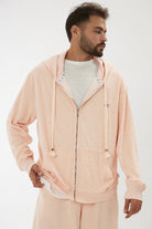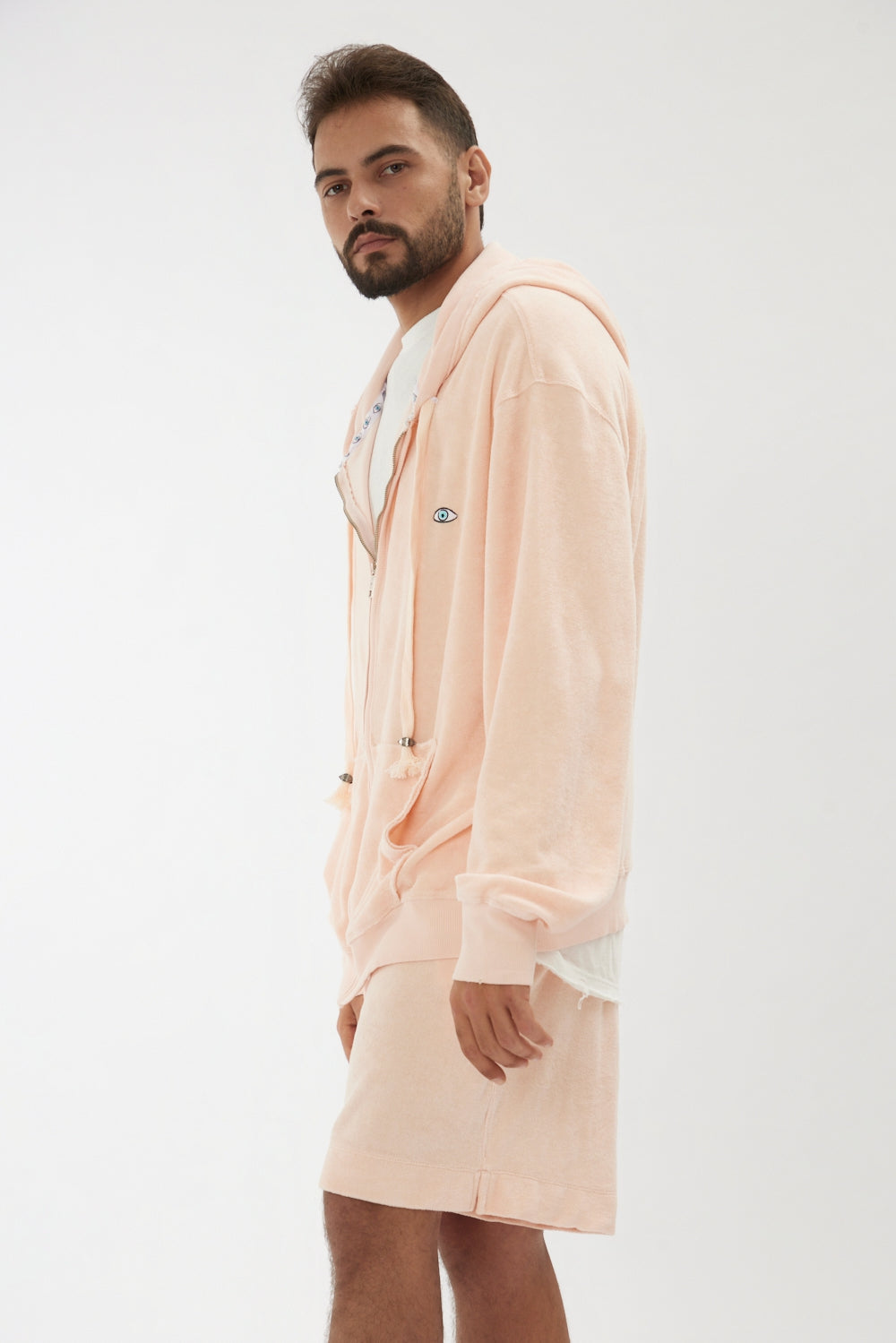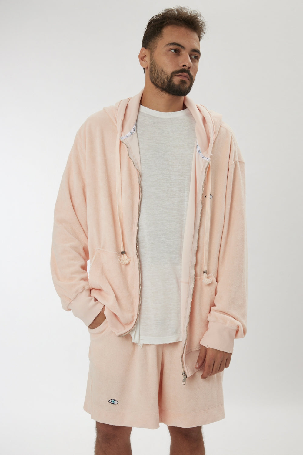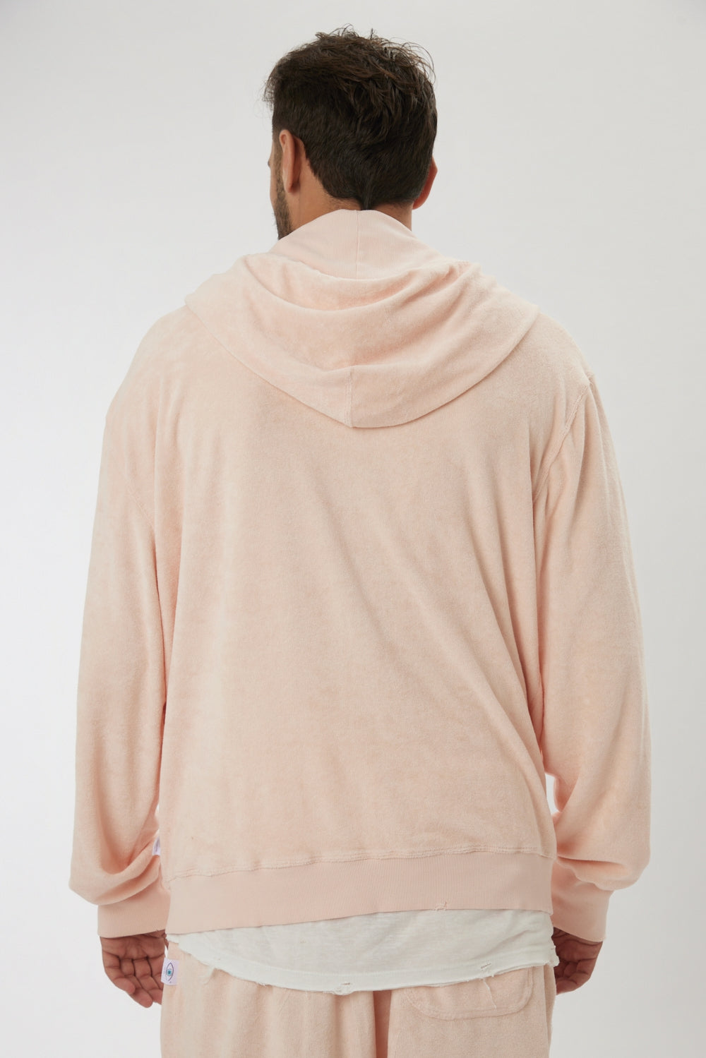 100% cotton towel-textured zip jacket with an unfinished, oversized, relaxed look.